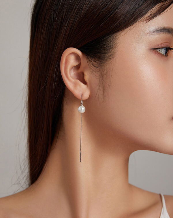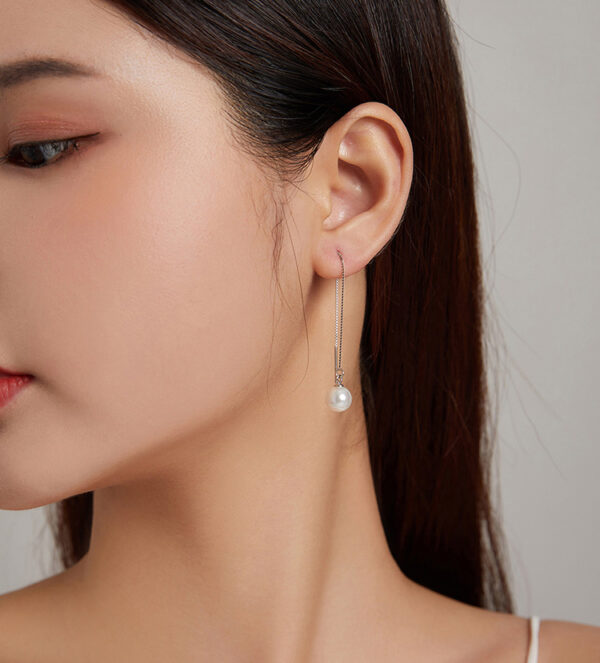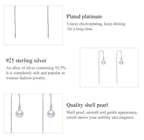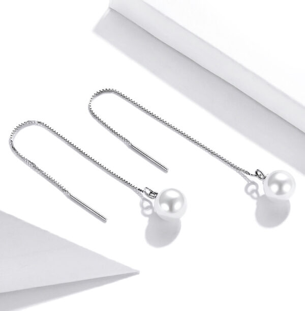 Κομψά, κρεμαστά σκουλαρίκια Bamoer κατασκευασμένα από ασήμι 925, επιπλατινωμένα, διακοσμημένα με εντυπωσιακή λευκή πέρλα.