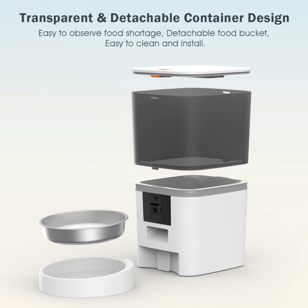 Εξοπλίζεται με κάμερα χάρη στην οποία μπορείτε παρακολουθείτε το κατοικίδιο σας την ώρα του γεύματος ενώ με το ενσωματωμένο μικρόφωνο σας δίνεται η δυνατότητα της αμφίδρομης μεταφοράς φωνής και ήχου αλλά και της ηχογράφησης ενός μηνύματος για να καταστήσετε σαφές στο κατοικίδιό σας ότι είναι ώρα του γεύματος.