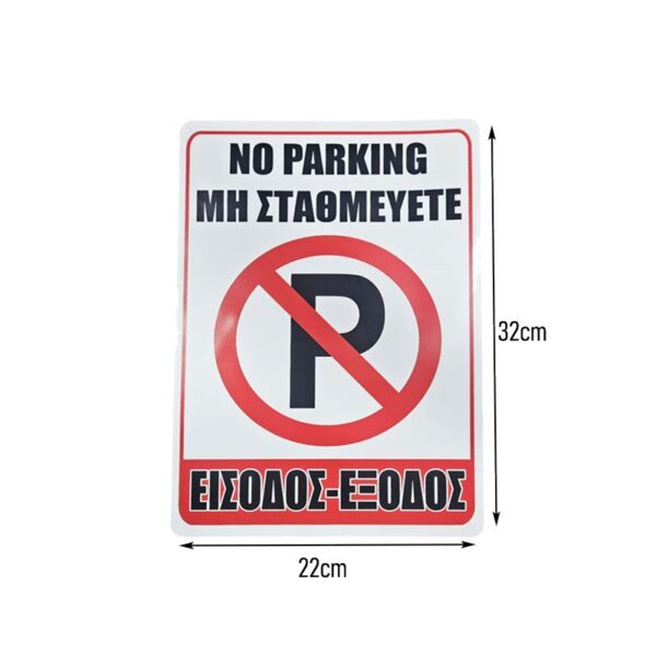 Σήμανση “ΜΗ ΣΤΑΘΜΕΥΕΤΕ – ΕΙΣΟΔΟΣ/ΕΞΟΔΟΣ”, ιδανική για τοποθέτηση σε γκαράζ, εισόδους, αυλές ή επαγγελματικούς χώρους όπου απαιτείται σαφής ενημέρωση για απαγόρευση στάθμευσης. Κατάλληλο για εξωτερική χρήση, με ευδιάκριτη εκτύπωση σε έντονα χρώματα για μέγιστη ορατότητα.