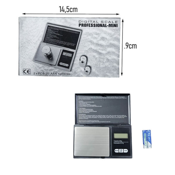 Αποκτήστε την απόλυτη ακρίβεια στις μετρήσεις σας με την ψηφιακή ζυγαριά PROFESSIONAL-MINI. Σχεδιασμένη για επαγγελματική χρήση αλλά και για κάθε ανάγκη που απαιτεί μεγάλη ακρίβεια, αυτή η μίνι ζυγαριά είναι ιδανική για τη ζύγιση κοσμημάτων, βοτάνων, φαρμάκων, μπαχαρικών και άλλων μικρών αντικειμένων. Με μέγιστη χωρητικότητα 200 γραμμαρίων και διαβάθμιση 0.01 γραμμαρίου, εξασφαλίζει αξιόπιστες και λεπτομερείς μετρήσεις κάθε φορά.