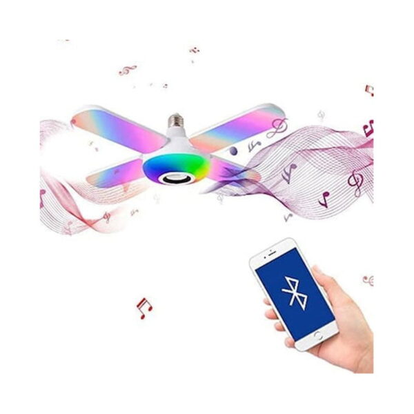 Έξυπνη Λάμπα led με Ενσωματωμένο Ηχείο Blutooth με 4 Φτερά και Τηλεχειριστήριο E 27 Το ενσωματωμένο ηχείο, μπορεί να αντιστοιχιστεί με συσκευές με δυνατότητα Bluetooth. Εύρος ασύρματου ελέγχου έως 10m / 33ft, μπορείτε να απολαύσετε τη διασκέδαση του ασύρματου ελέγχου του φωτός και της αναπαραγωγής μουσικής. Με ρυθμιζόμενα 4 φτερά. Κάθε φτερό μπορεί να διπλωθεί έως και 90°, ακόμη και η μέγιστη γωνία κάλυψης μπορεί να φτάσει τις 180°, γεγονός που κάνει το φως να καλύπτει μια μεγάλη περιοχή. Μπορείτε να προσαρμόσετε τις θέσεις των φτερών ανάλογα με τις ανάγκες σας, επιτυγχάνοντας κατευθυντικό φωτισμό. Έτσι, προσφέρει την καλύτερη εμπειρία φωτισμού εσωτερικού χώρου για τον χώρο εργασίας σας ή του σπιτιού σας. Συνδέστε τη λάμπα με το smartphone σας μέσω blutooth και απολαύστε την αγαπημένη σας μουσική στο σπίτι ή το γραφείο! Το τηλεχειριστήριο θα σας βoηθήσει να επιλέξετε τους χρωματισμούς της λάμπας που επιθυμείτε και να ρυθμίσετε τη μουσική από την άνεση του καναπέ ή του γραφείου σας! Πολύ χαλαρωτικό αν προσπαθείτε να κοιμήσετε το βράδυ το παιδάκι σας με ήρεμη μουσική! Ευρέως εφαρμόσιμο στο σπίτι, το γραφείο, το καφέ, το μπάρ ακόμη το ξενοδοχείο! Αποτελεί μια πολύ καλή επιλογή δώρου για μικρούς και μεγάλους!