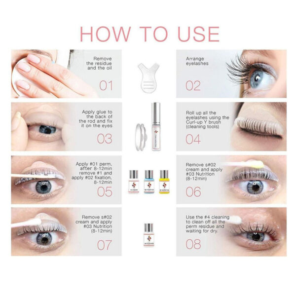 Εφαρμόστε το #01(perm) για 8-12 λεπτά, αφαιρέστε το προιόν #01(perm) με το ειδικό βουρτσάκι Curl-up Y brush και στη συνέχεια εφαρμόστε το #02(fixation) για άλλα 8-12 λεπτά.