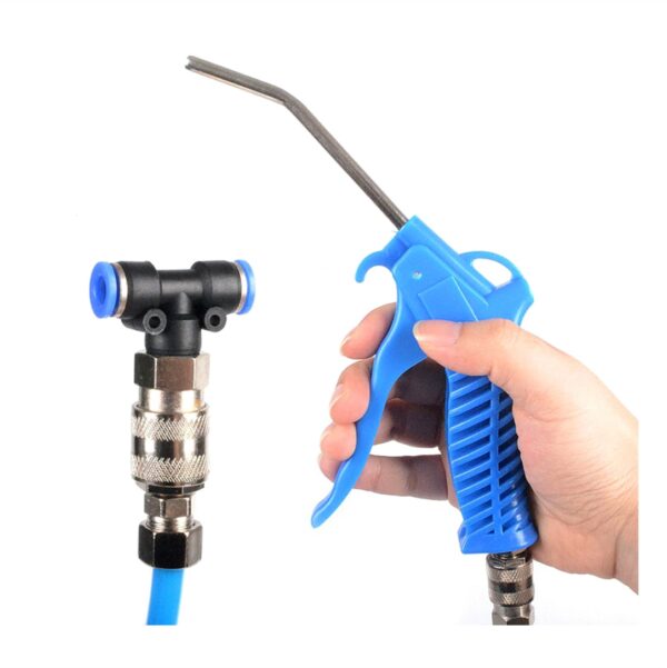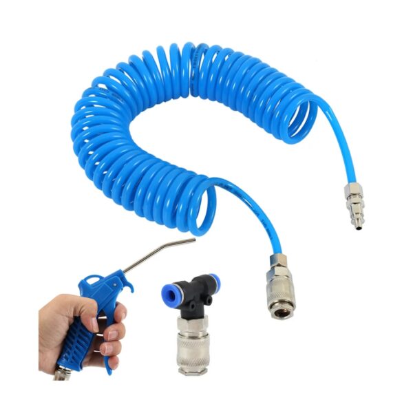 Φυσητήρας αέρος με λάτιχο σπιράλ. Κατάλληλο για φύσημα αυτοκινήτων, μηχανημάτων και άλλα. Διαθέτει άνετο χειρισμό, σκανδάλη. Λειτουργεί με αεροσυμπιεστή που δεν περιλαμβάνεται σε αυτό το πιστόλι. Μέγεθος ακροφυσίου 120mm. Κατασκευσμένο από μεταλλικό και πλαστικό υλικό. Μέγιστη πίεση: 10 Kg bar/cm². Μήκος σπιράλ: 5 μέτρα.