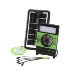 Ηλιακός φορτιστής φορητών συσκευών και σύστημα φωτισμού με ανεμιστήρα. Συμβατός με τα περισσότερα κινητά τηλέφωνα και άλλες ηλεκτρονικές συσκευές με έξοδο. Διαθέτει καλώδιο USB. Μέγιστη τάση τροφοδοσίας 6V. Ισχύς πάνελ 3.5W. Διαστάσεις πάνελ 17x15cm. Ιδανικό για κινητά, ηχεία, φακούς και άλλες συσκευές. Χρόνος φόρτισης 7-8 ώρες.