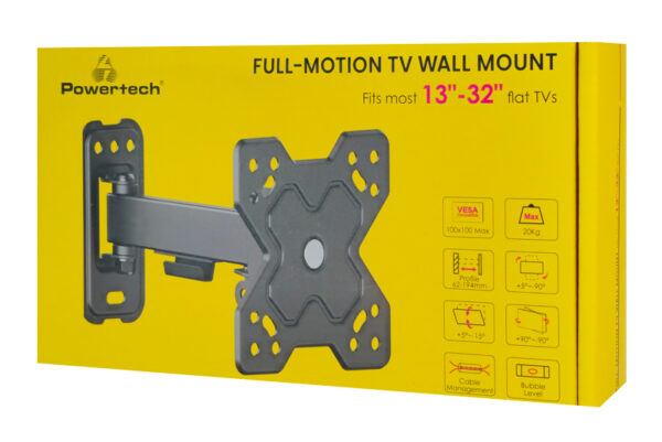 POWERTECH επιτοίχια βάση τηλεόρασης PT-1277, 13-32", έως 20kg, full motion