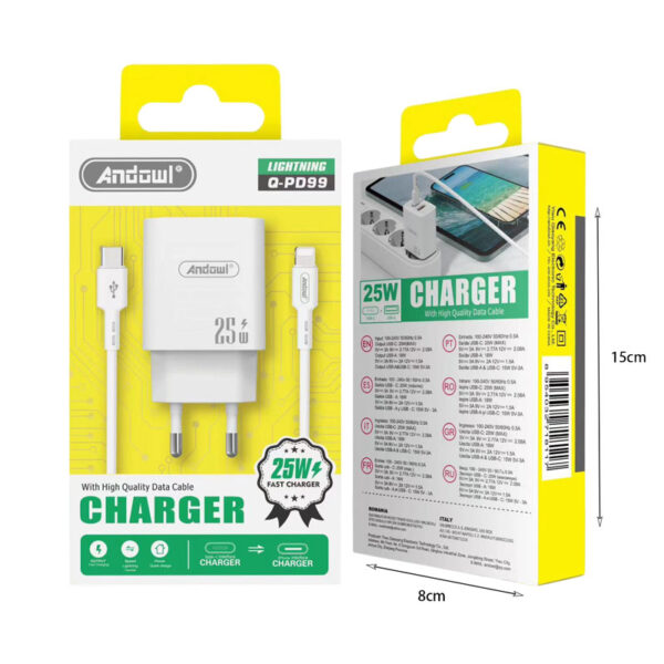 Andowl Φορτιστής με καλώδιο Type-C σε Lightning & θύρα USB-A 25W Q-PD99 – Charger