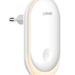 Φωτιστικό νυκτός της LDNIO με αισθητήρα φωτός για την αυτόματη ενεργοποίηση του φωτιστικού όταν βραδιάζει. Διαθέτει πολυλειτουργικό διακόπτη για την ρύθμιση της φωτεινότητας και εναλλαγή λειτουργίας (light sensitive mode, light off mode).