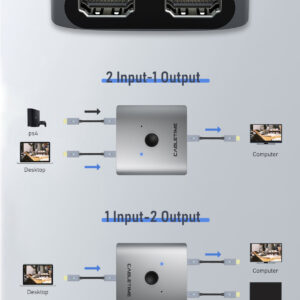 • CABLETIME HDMI switch CT-HS4K, 2 σε 1, 4K, bidirectional, γκρι