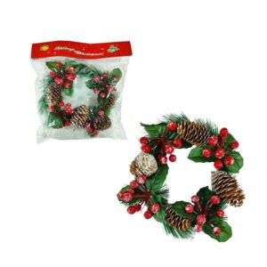 • Χριστουγεννιάτικο Διακοσμητικό Στεφάνι Berries Κουκουνάρια 19cm – Christmas Decorative Wreath Berries Cocoons
