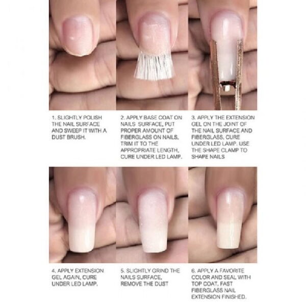 Οι ίνες Fiberglass είναι ειδικά προετοιμασμένες για επεκτάσεις νυχιών.