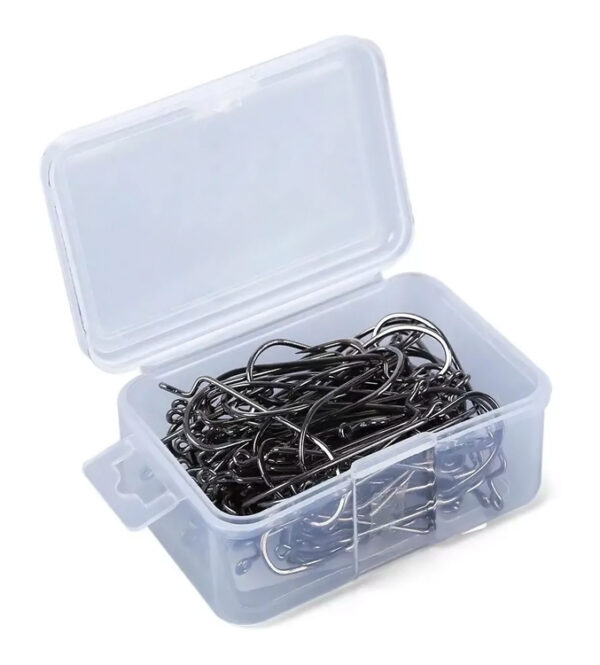 Σετ αγκίστρια ψαρέματος με θήκη για την αποθήκευση τους. Είναι κατασκευασμένα από ανθεκτικό και υψηλής ποιότητας carbon steel που δεν σκουριάζει.