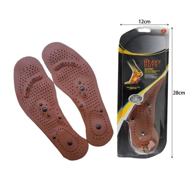 Ανατομικός Μαγνητικός Πάτος MAN Gel Heavy duty. Οι μαγνητικοί πάτοι σιλικόνης με τους μαγνήτες μασάζ διεγείρουν και μαλάσσουν τα σημεία ρεφλεξολογίας στις πατούσες σας ενώ περπατάτε. Όταν προσαρμοστεί στο παπούτσι, θεραπεύει τα πόδια και τους αστραγάλους, μειώνει τον πόνο των μυών, τον πόνο της πλάτης, τους πονοκεφάλους και την κόπωση. Βοηθά στο μεταβολισμό του οργανισμού με συνέπεια την απώλεια βάρους. Οι Βιομαγνητικοί πάτοι περιέχουν gel που μετακινείται σε όλη την επιφάνεια, το οποίο το νιώθετε σαν μασάζ την ώρα που περπατάτε. Το gel βοηθάει στην εξισορρόπηση της θερμοκρασίας των ποδιών, άρα μειώνει τον ιδρώτα, την οσμή, καθώς και τα βακτήρια που δημιουργούνται στις άκρες των ποδιών.