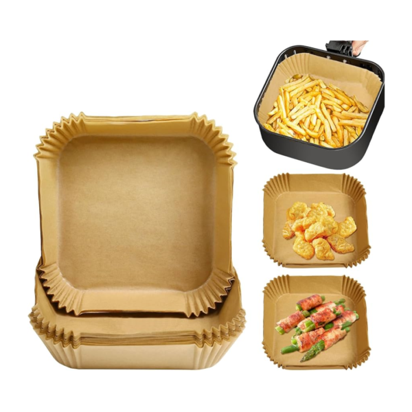 Αντικολλητικό χαρτί για φριτέζα αέρος τετράγωνο. Κατάλληλο για ψήσιμο φαγητού στο φούρνο ή για παρασκευή γλυκών που μπαίνουν σε ψυγείο ή κατάψυξη. Η συσκευασία περιλαμβάνει 50τμχ. Διαστάσεις 16×4.5cm. Αδιάβροχα – δεν απορροφά τα λίπη.