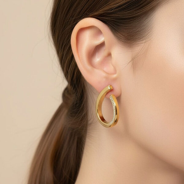 Ατσάλινα Σκουλαρίκια Δάκρυ με Στρας – Χρυσό
