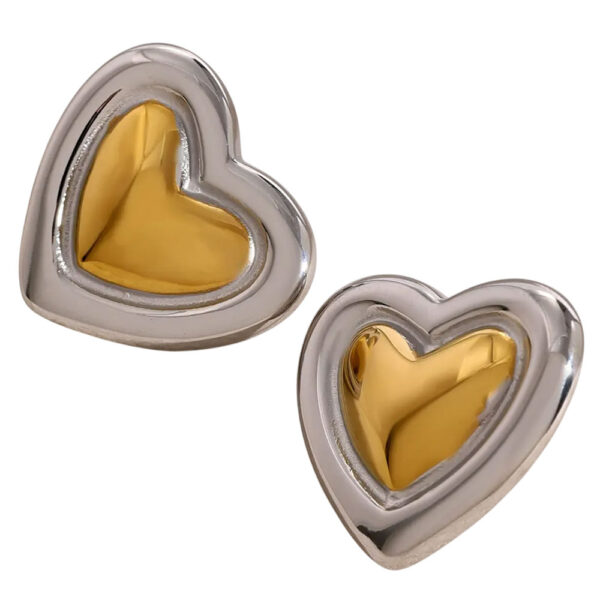 Ατσάλινα Σκουλαρίκια Καρφωτά,Σε Σχήμα Καρδιάς Χρυσό