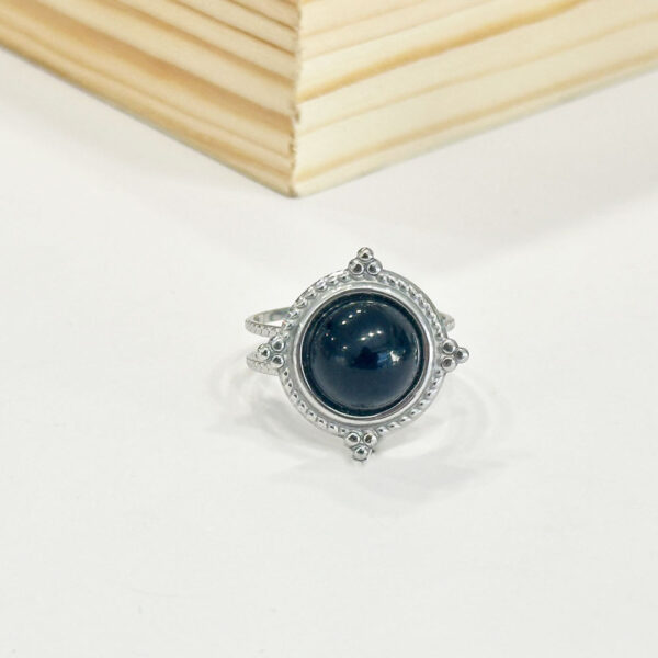 Ατσάλινο Δαχτυλίδι Με Χρωματιστή Πέτρα – Ασημί Μαύρο