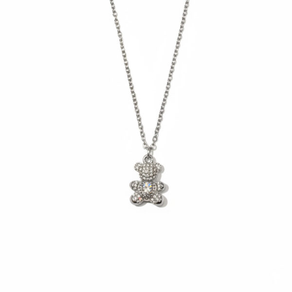 Ατσάλινο Κολιέ Αρκουδάκι με Ζιργκόν – Ασημί