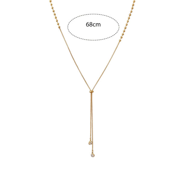 Ατσάλινο κολιέ γραβάτα σε χρυσό ή ασημί χρώμα με λεπτή αλυσίδα και κρεμαστά διακοσμητικά στρας. Ένα κομψό και διαχρονικό σχέδιο που προσφέρει λάμψη και στυλ σε κάθε εμφάνιση. Μήκος αλυσίδας 68cm για άνετη εφαρμογή.