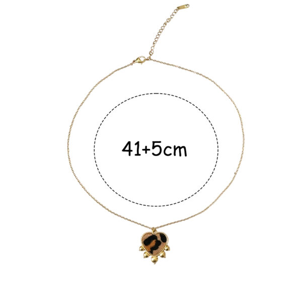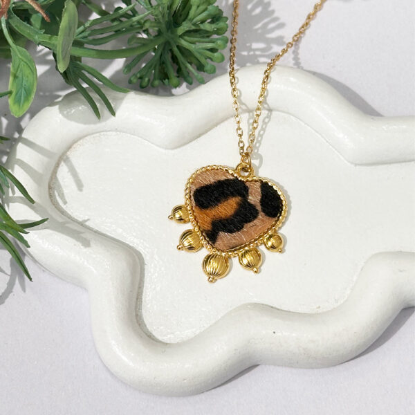 Ατσάλινο Κολιέ Καρδιά Leopard με Χρυσές Λεπτομέρειες