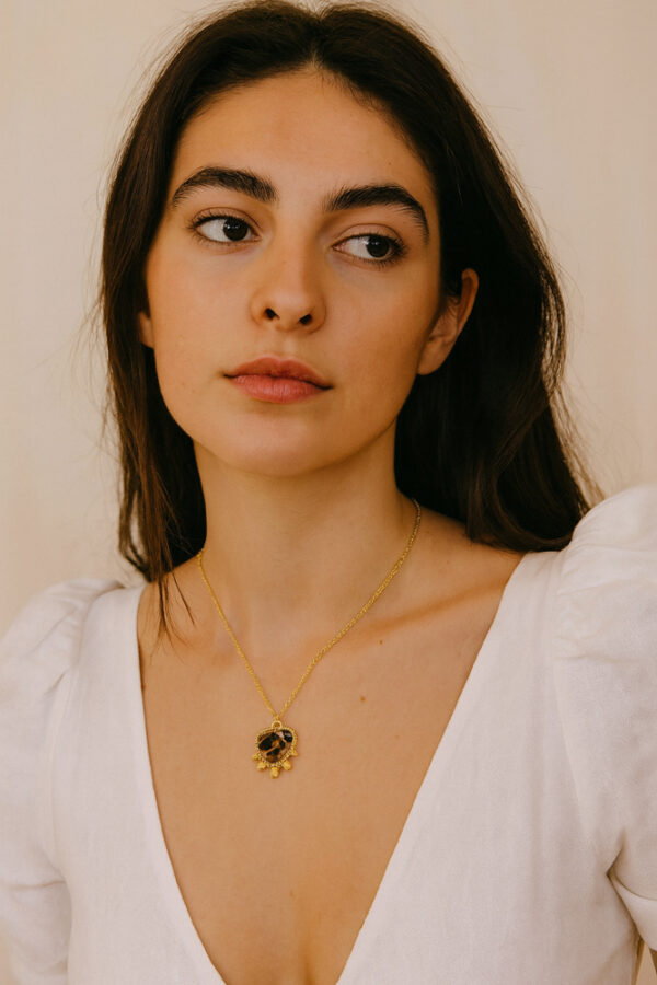 Αναδείξτε το στυλ σας με το απόλυτο fashion statement! Το ατσάλινο κολιέ με καρδιά σε leopard μοτίβο και εντυπωσιακές χρυσές λεπτομέρειες συνδυάζει bold χαρακτήρα και διαχρονική κομψότητα. Τα μικρά κρεμαστά στοιχεία χαρίζουν κίνηση και γοητεία, κάνοντάς το το must–have αξεσουάρ της σεζόν. Ιδανικό για να απογειώσει κάθε σας outfit, από το πρωί μέχρι το βράδυ.