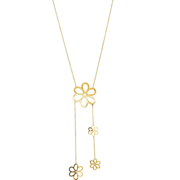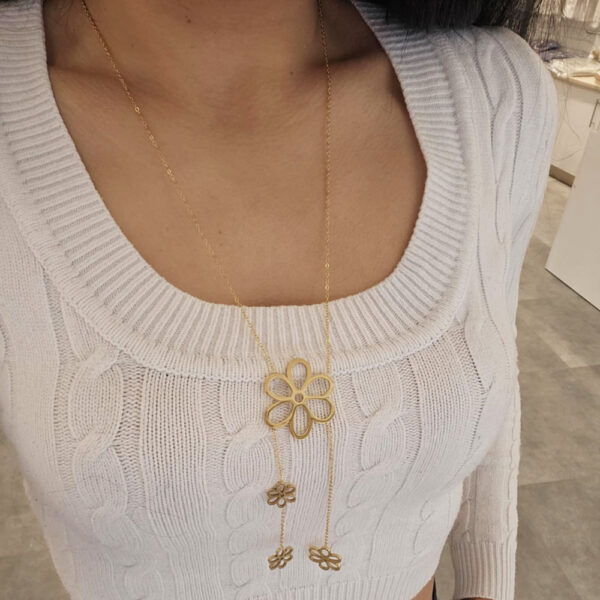 Ατσάλινο Κολιέ Μακρύ Με Λουλούδια – Ασημί