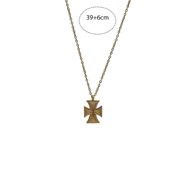Ατσάλινο κολιέ με σταυρό Μάλτας, διακοσμημένο με λεπτομερή ανάγλυφη χάραξη που αναδεικνύει τη μοναδική του μορφή. Ο ιδιαίτερος σχεδιασμός του αποπνέει δύναμη και κομψότητα, προσθέτοντας μια διακριτική πινελιά ιστορικού συμβολισμού στο στυλ σας. Κατασκευασμένο από ανοξείδωτο ατσάλι, παραμένει λαμπερό χωρίς να μαυρίζει, ιδανικό για καθημερινή ή πιο επίσημη εμφάνιση.