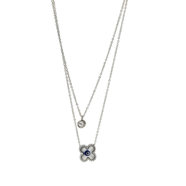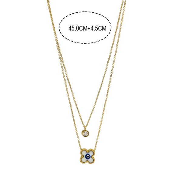 Ατσάλινο Κολιέ Με Διπλή Αλυσίδα Και Πέτρα Φίλντισι Με Ματάκι – Χρυσό