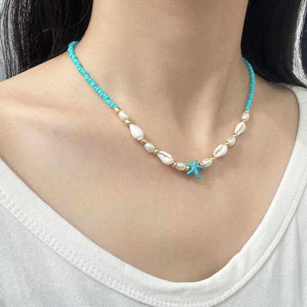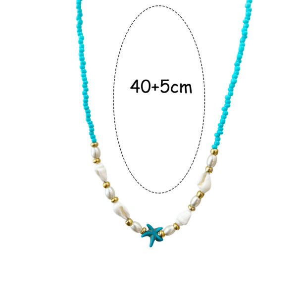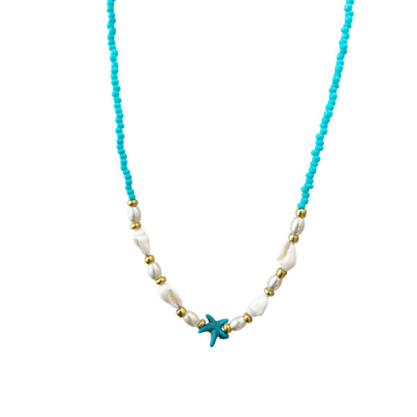Ατσάλινο Κολιέ με Κοχύλια, Γαλάζιες Χάντρες & Αστερία