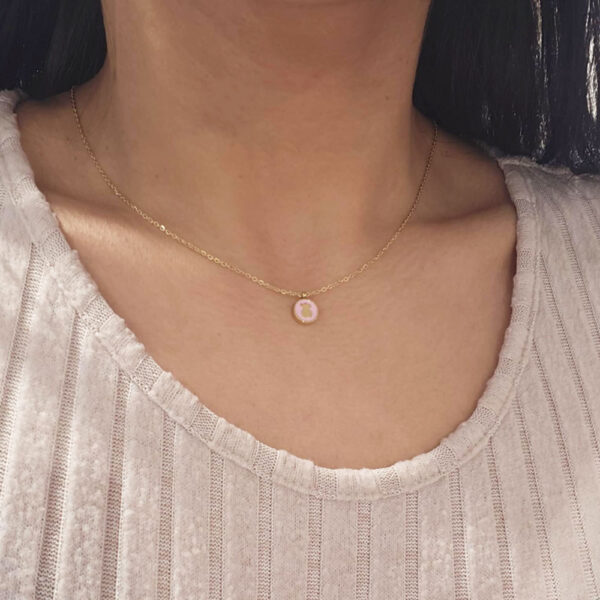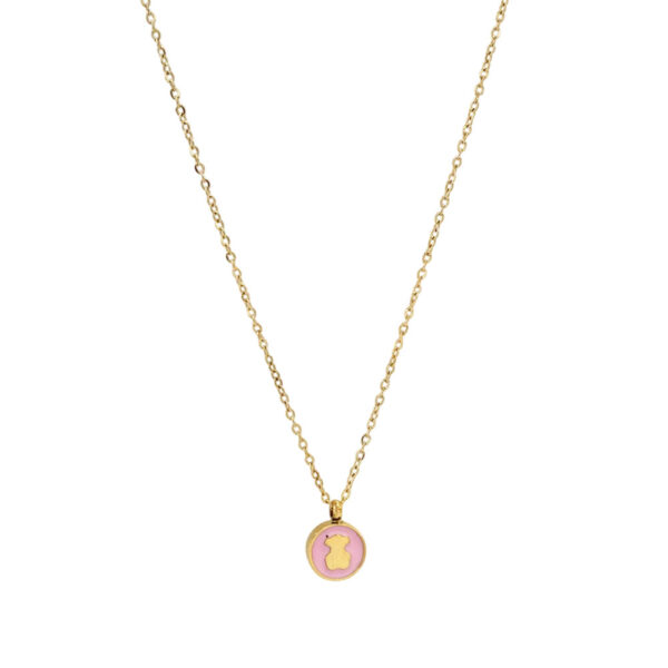 Ατσάλινο Κολιέ Με Κρεμαστό Στοιχείο Και Πέτρα Φίλντισι – Χρυσό Ροζ