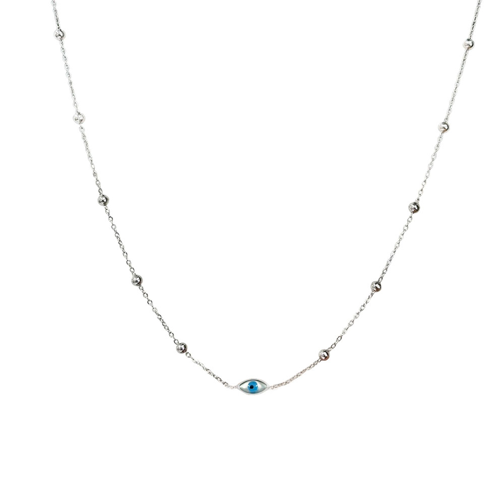 Ατσάλινο Κολιέ Με Ματάκια – Ασημί