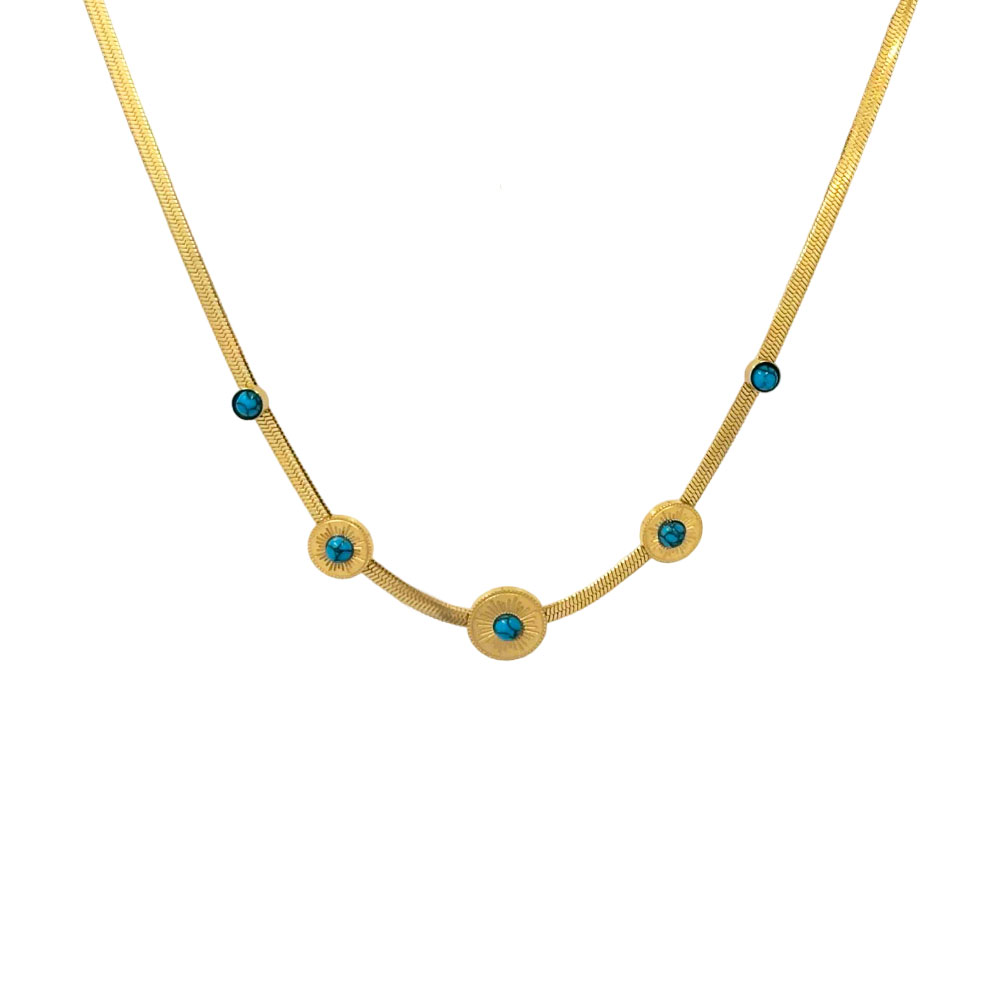 Ατσάλινο Κολιέ Με Μπλε Πέτρα – Ασημί