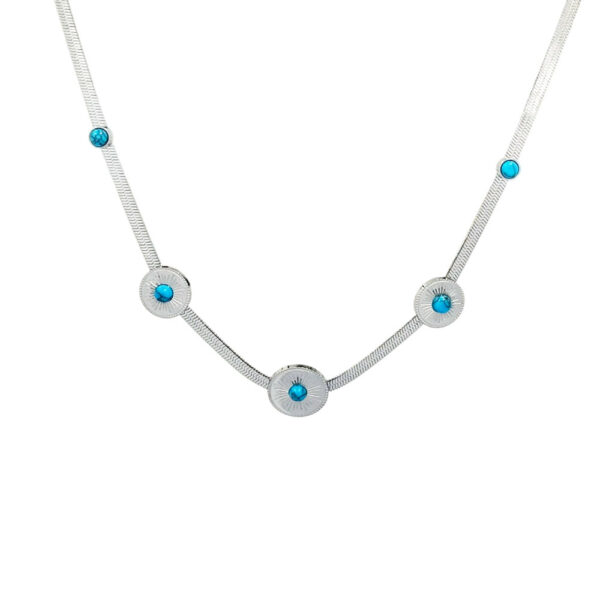Ατσάλινο Κολιέ Με Μπλε Πέτρα – Χρυσό