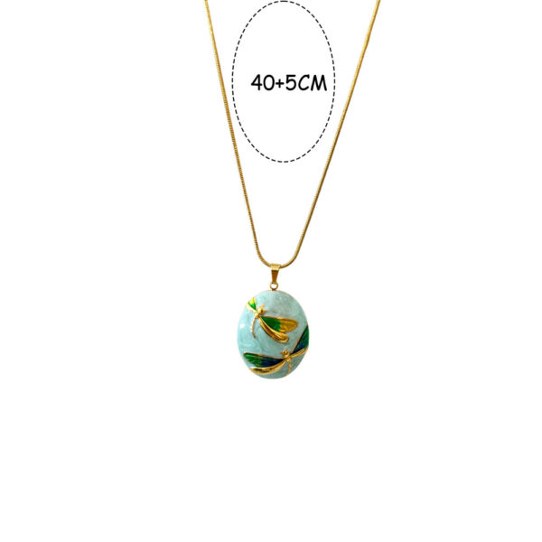 Ατσάλινο Κολιέ με Οβάλ Μενταγιόν & Πολύχρωμες Λιβελούλες – Χρυσό Μπλε