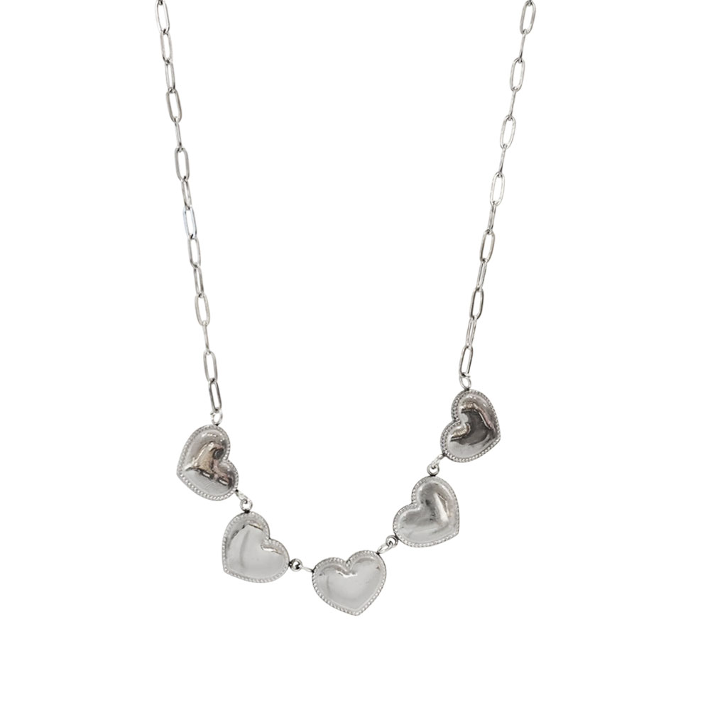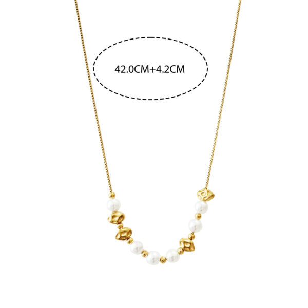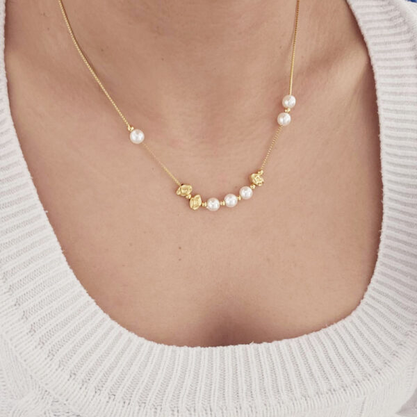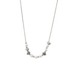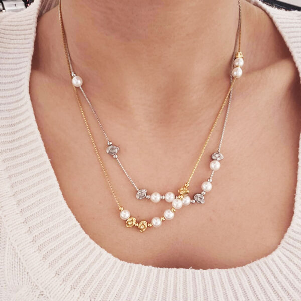 Ατσάλινο Κολιέ Με Πέρλες Και Ανάγλυφες Πέτρες – Ασημί
