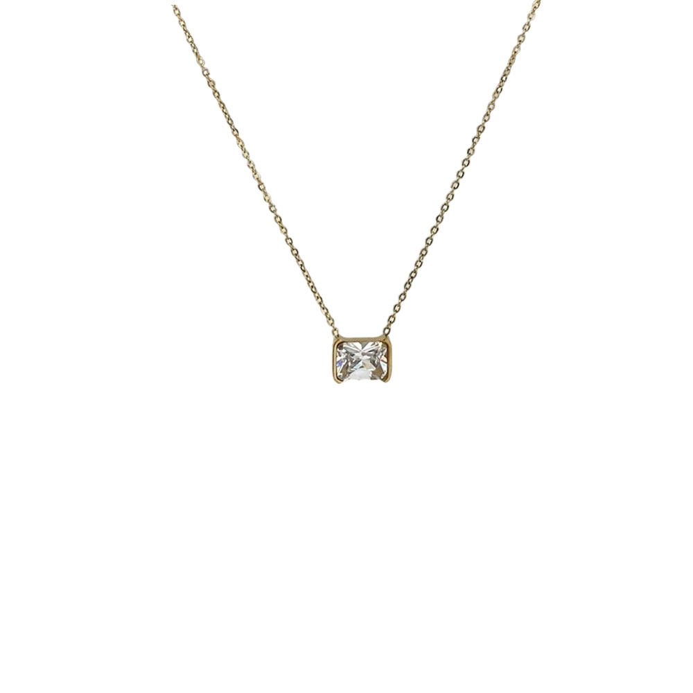 Ατσάλινο Κολιέ Με Πέτρα – Ασημί Άσπρο