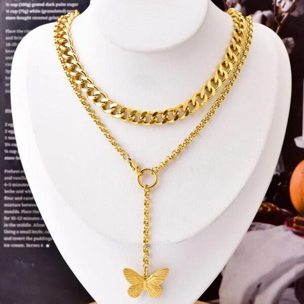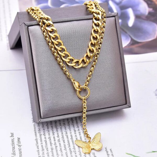 Ατσάλινο Κολιέ Με Πεταλούδα – Χρυσό