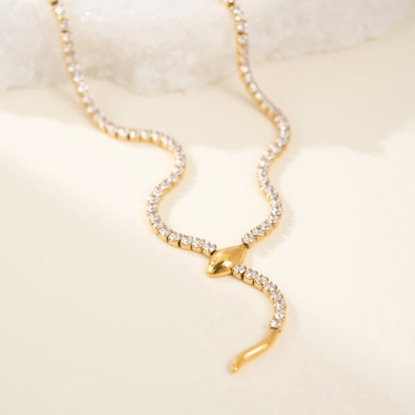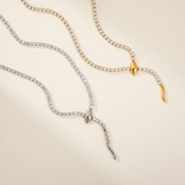 Ατσάλινο Κολιέ με Σχέδιο Φίδι και Ζιργκόν – Ασημί
