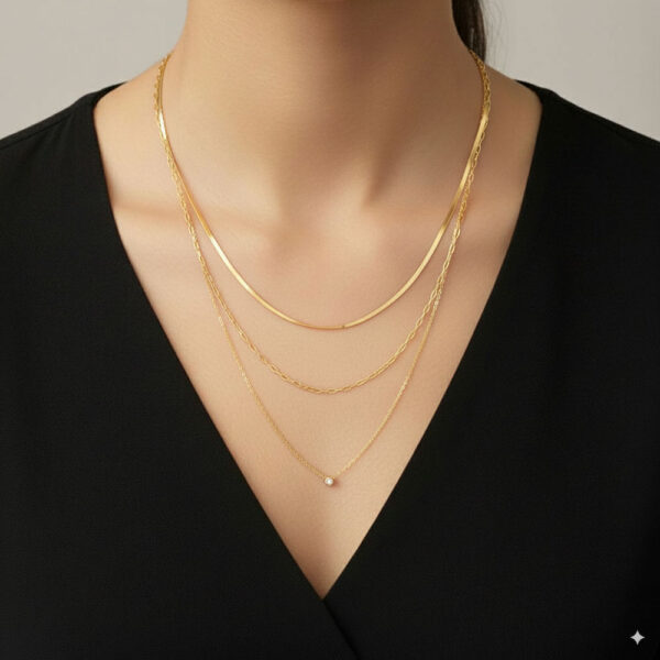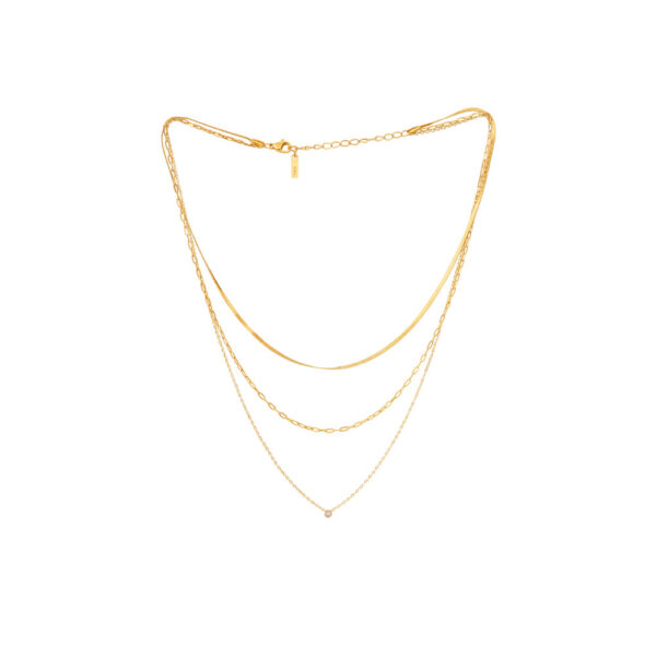 Ατσάλινο κολιέ με τριπλή αλυσίδα και ζιργκόν – Χρυσό
