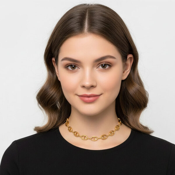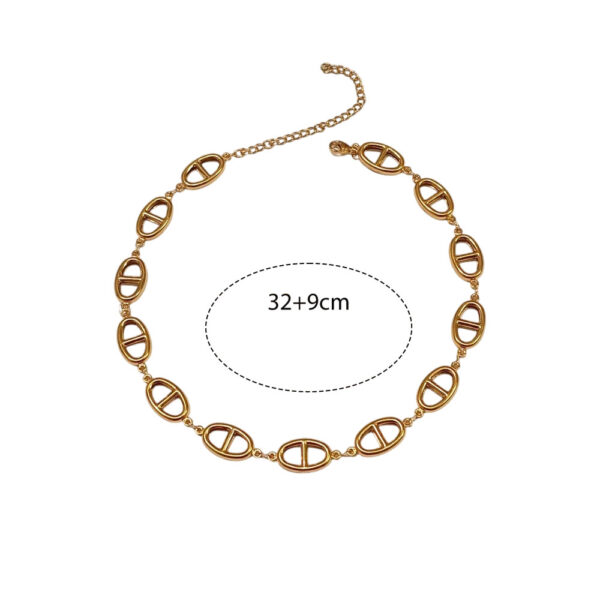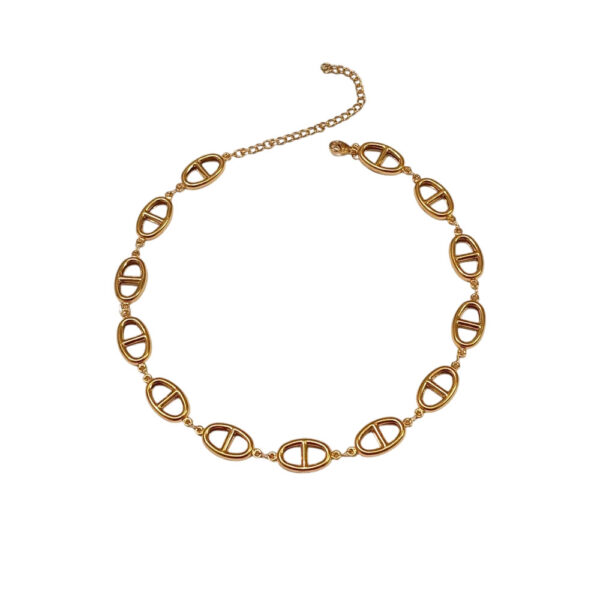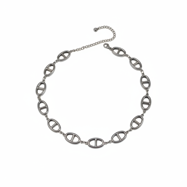 Κολιέ από ανοξείδωτο ατσάλι με ιδιαίτερα οβάλ μοτίβα, διαθέσιμο σε χρυσό και ασημί χρώμα. Κομψό και ανθεκτικό σχέδιο που δεν μαυρίζει και συνδυάζεται εύκολα με κάθε στυλ, από καθημερινό μέχρι βραδινό. Μήκος αλυσίδας 32+9cm για άνετη και προσαρμοσμένη εφαρμογή.