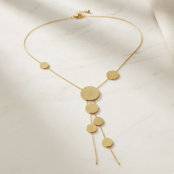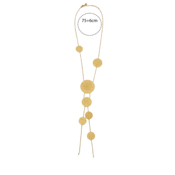 Μοντέρνο μακρύ κολιέ από ατσάλι με εντυπωσιακά κυκλικά στοιχεία σε ματ υφή. Ο minimal και elegant σχεδιασμός του το καθιστά ιδανικό για να ολοκληρώσει κάθε εμφάνιση, από καθημερινή έως πιο επίσημη.Κατασκευασμένο από υψηλής ποιότητας ατσάλι που δεν μαυρίζει, διατηρεί τη λάμψη και τη φινέτσα του με την πάροδο του χρόνου. Ένα statement κόσμημα που προσθέτει χαρακτήρα και στυλ σε κάθε look.