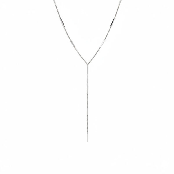 Ατσάλινο Μακρύ Κολιέ με Ορθογώνιες Λεπτομέρειες – Ασημί