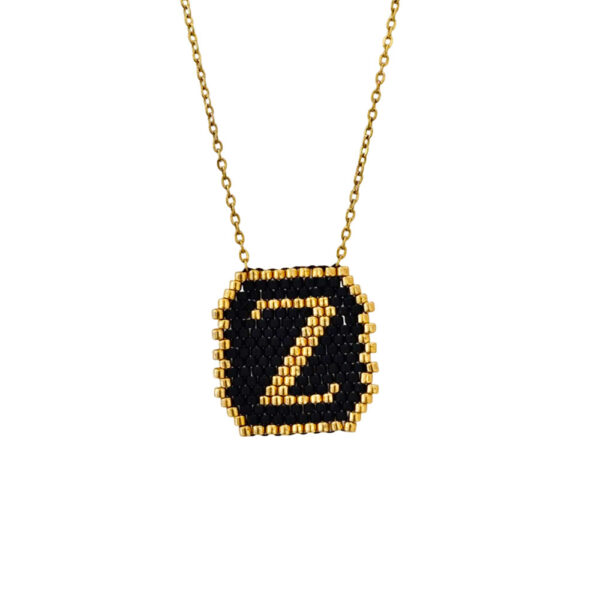 Ατσάλινο Μονόγραμμα ”Ζ” Με Μαύρες Και Χρυσές Χάντρες