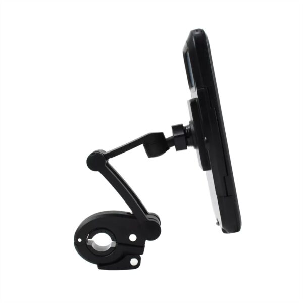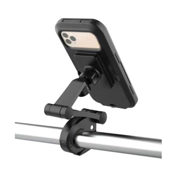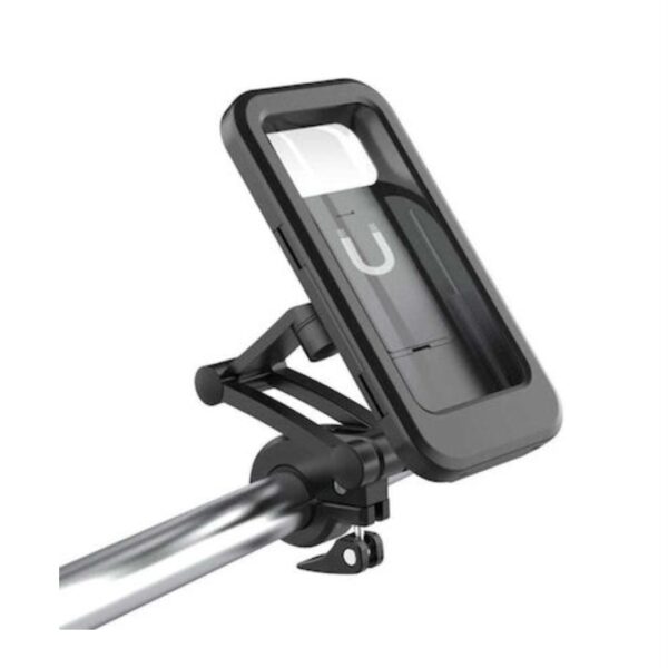 Βάση στήριξης κινητού της εταιρείας Andowl για μηχανές και ποδήλατα. Η βάση τοποθετείτε με ρυθμιζόμενο αντάπτορα στη μπάρα του τιμονιού της μηχανής. Το κινητό στηρίζετε στην θήκη. Διαθέτει περιστροφή για πιο εύκολη ρύθμιση της επιθυμητής θέσης της συσκευής. Η θήκη είναι αδιάβροχη.