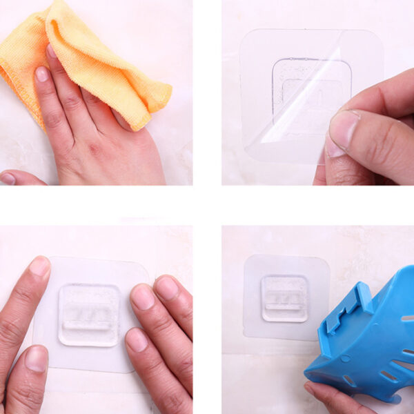 Βάση μπάνιου για σαπούνι με 6 θέσεις που σας επιτρέπουν να κρεμάσετε πετσέτες βούρτσες κ.α. Τοποθετείται εύκολα στον τοίχο με αυτοκόλλητο το οποίο αποσπάται από την βάση, διευκολύνοντας τον καθαρισμό της.