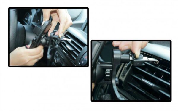 Βάση στήριξης smartphone αυτοκινήτου με πολλαπλές ρυθμίσεις. Τοποθέτηση στις περσίδες του κλιματιστικού με ειδικό κλιπ. Βάση στήριξης κινητού προσαρμόσιμου πλάτους, με προστατευτικά σιλικόνης. Πτυσσόμενος βραχίονας – ρύθμιση κλίσης. Μέγιστο πλάτος/άνοιγμα βάσης: 9cm.