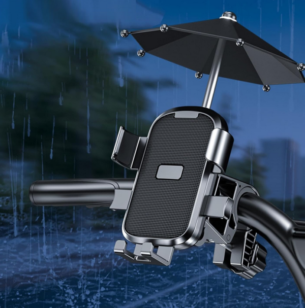 Βάση στήριξης smartphone ποδηλάτου/μοτοσυκλέτας με σκίαστρο, με κεφαλή ρυθμιζόμενης κλίσης και ρυθμιζόμενη δακτύλιο τοποθέτησης διαμέτρου 18-25mm.