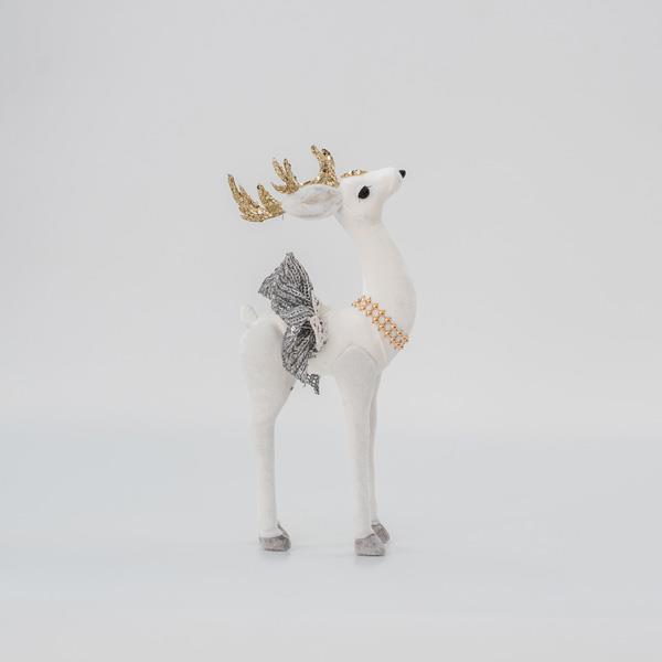 ΒΕΛΟΥΔΙΝΟ ΕΛΑΦΙ, ΛΕΥΚΟ, ΜΕ ΧΡΥΣΟ ΓΚΛΙΤΕΡ, 13x29x5cm Eurolamp