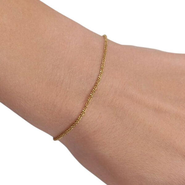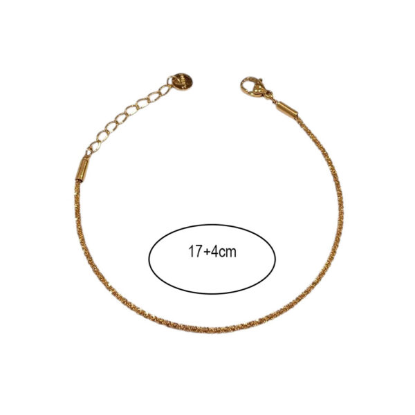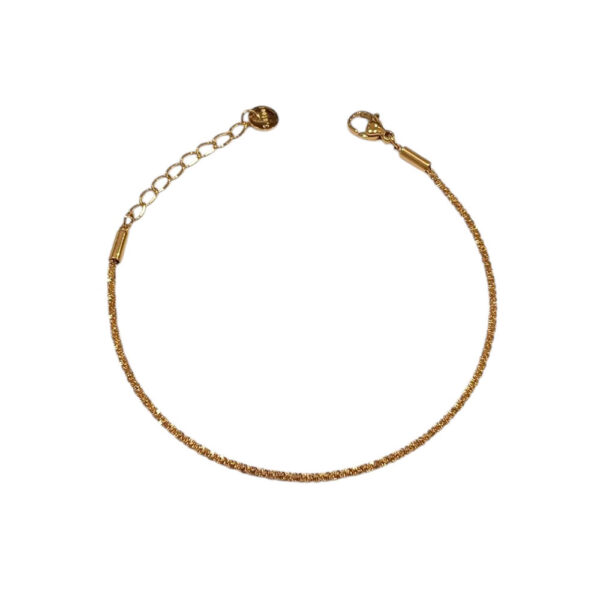 Μίνιμαλ βραχιόλι από ανοξείδωτο ατσάλι με λεπτή αλυσίδα και λαμπερό φινίρισμα, ιδανικό για καθημερινή κομψότητα ή για συνδυασμό με άλλα βραχιόλια. Διατίθεται σε χρυσό και ασημί χρώμα.