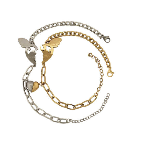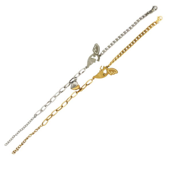 Βραχιόλι Καρδιά Με Φτερό Για Ζευγάρι Απο Ατσάλι – ΑΣΗΜΙ/ΧΡΥΣΟ