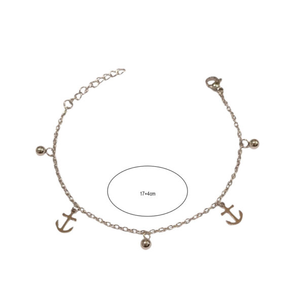 Κομψό βραχιόλι με δύο μεταλλικές άγκυρες και τρεις μικρές μπίλιες που χαρίζουν παιχνιδιάρικη κίνηση. Κατάλληλο για καθημερινή χρήση αλλά και για καλοκαιρινές εμφανίσεις. Φτιαγμένο από ανοξείδωτο ατσάλι και διαθέσιμο σε χρυσό και ασημί.